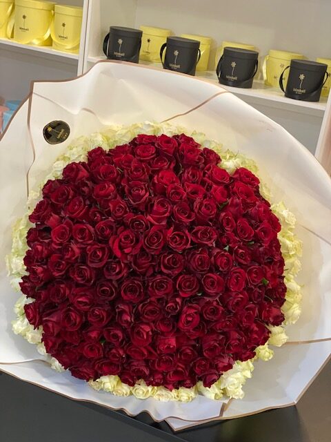 Capture the essence of elegance and romance in this rose arrangement of classic red roses with a border of classic white roses made to impress.